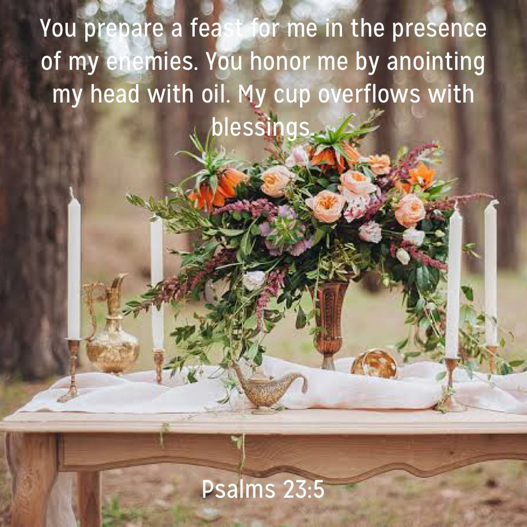 In the presence of my enemies and surrounded by this worlds “stuff”, I have this banquet of beautiful moments set up for me as a demonstration of Gods lavish love towards me.