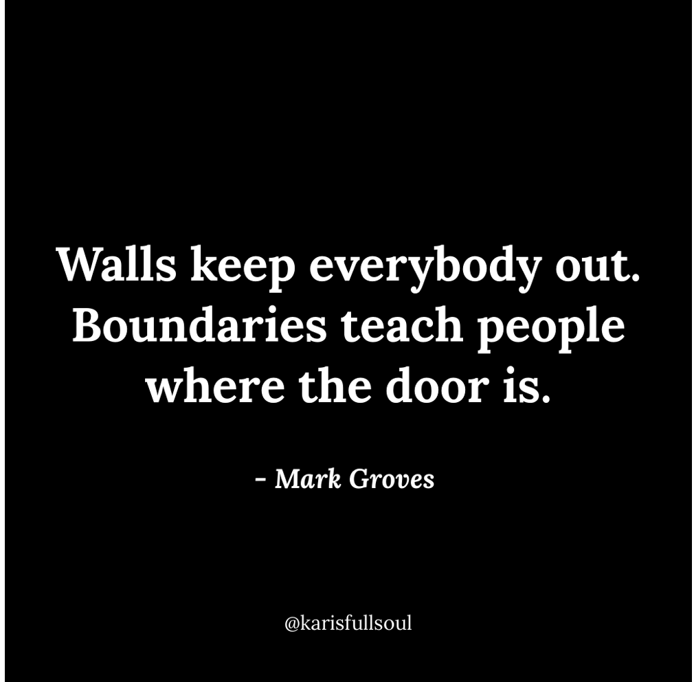 Your boundaries are set in place by you and you alone. That means that some may be there forever and some only for a season. You determine which stay, which change and which will one day go altogether. Just remember that you are not a mean, evil or revolting human being for doing what you need to do to remain strong and emotionally healthy- what can make you seem awful is the way you deliver the boundary. Be kind but do what you have to do withgrace. Remember, one day you will be on the receiving end of somebody else’s boundary line. Proceed with caution but exercise determination and a steadfast spirit free from fear, always behaving with a kindness and compassion- both to the person receiving the boundary and to yourself creating it.